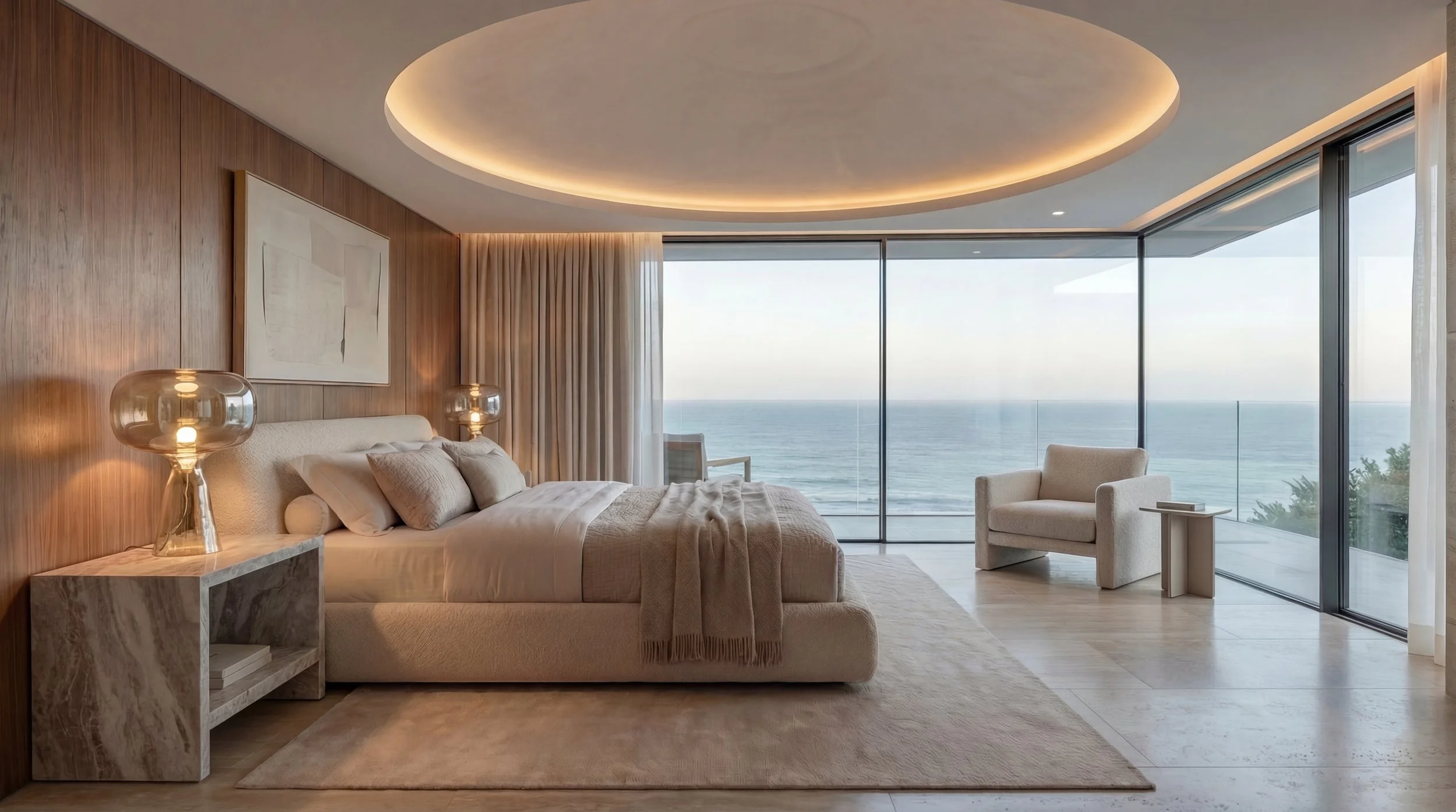 Perched above the Atlantic in Clifton, this apartment was curated as a refined coastal retreat where design and landscape exist in quiet harmony. The interior palette draws from its surroundings—warm timber ceilings, soft neutral upholstery, and tactile natural materials—creating a layered yet restrained backdrop for the panoramic ocean and mountain views. Sculptural designer furniture and carefully selected statement pieces anchor the space, balancing elegance with comfort. Every element, from the lighting to the art, was thoughtfully composed to craft a home that feels both sophisticated and deeply connected to its extraordinary setting.